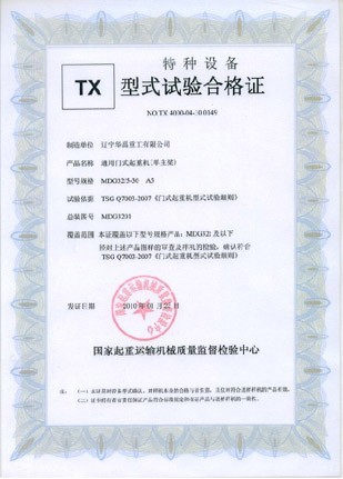 型式试验合格证007