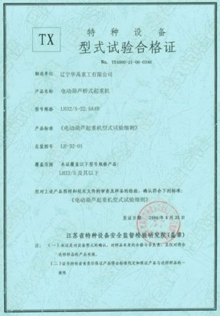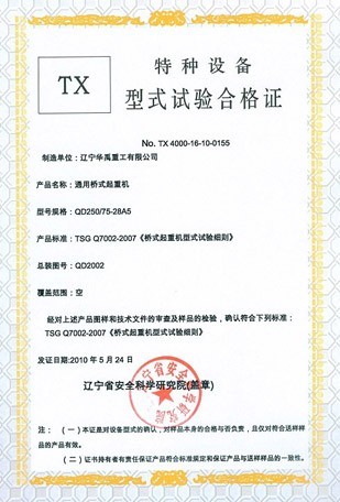 防爆双梁型式试验合格证